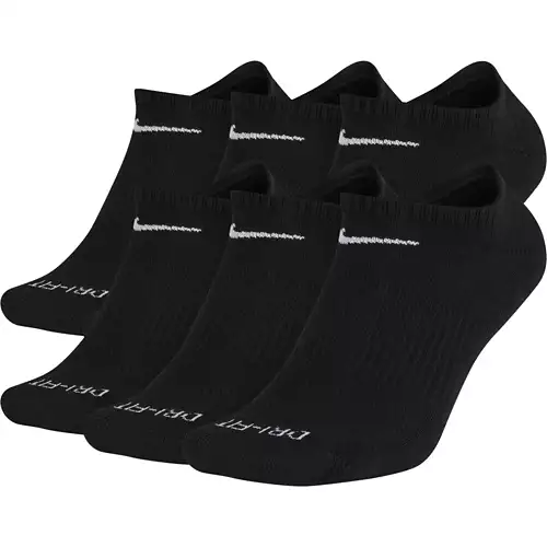 The Nike Everyday Plus Cushion No-Show 6 Pack Socks are a must-have for everyone. These Nike no-show socks look great with all types of shoes with their low-profile silhouette. The sweat-wicking, quick-drying Nike Dri-FIT technology keeps your feet cool and comfortable through every workout and long day on your feet. This pack of Nike socks comes with six pairs of no-show socks featuring arch support that contours around your feet. Stock up on the necessities with the Nike Everyday Plus Cushion No-Show 6 Pack Socks.