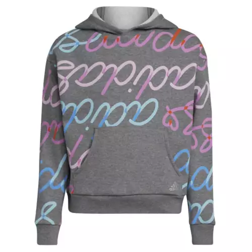 Signature adidas style is literally written all over this girls’ hoodie in silver foil letters. Soft comfort comes standard with a loose fit and warm fleece. A kangaroo pocket is the perfect place for her to keep her hands cozy.