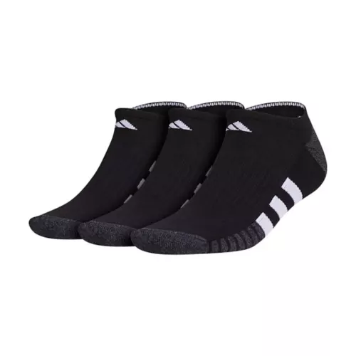 This three-pack of adidas no-show socks is made with moisture-wicking yarn to keep feet dry all day. Strategically placed mesh adds ventilation in high-sweat areas. The cushioned footbed is soft and comfortable.