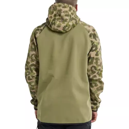 The men’s Burton Crown Weatherproof Pullover Fleece has your back in cool, damp weather. Its thick fleece is warm and weather-resistant enough to be part of your mountain layering mix and casual enough for chilling in town. Secure pockets let you stash electronics. Throw on the drawcord hood and consider yourself ready for just about anything. / Regular fit is just right: Not too tight or too baggy
