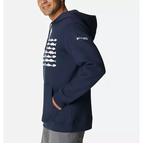 The Men’s Columbia PFG Fish Flag II Hoodie combines your love of country with your love of fishing. The Men’s Columbia PFG Fish Flag II Hoodie features an American Flag fish graphic screen-printed on the front. Plus, the Men’s Columbia PFG Fish Flag II Hoodie doesn’t sacrifice comfort—the drawcord-adjustable hood, cozy fleece construction, and front kangaroo pocket provide all-day warmth and convenience. Go fishing in the stylish and comfortable Men’s Columbia PFG Fish Flag II Hoodie.