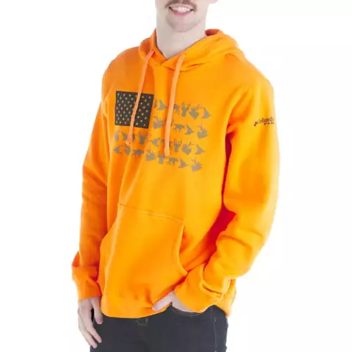 The Men’s Columbia PHG Game Flag II Hoodie is the ultimate hunting layer. You can even warm up with the Men’s Columbia PHG Game Flag II Hoodie during the offseason as well! The Men’s Columbia PHG Game Flag II Hoodie is made with soft, warm fleece and features a hunting/flag graphic you’ll want to show off. Plus, features like a kangaroo pocket and drawcord-adjustable hood add extra protection in cool weather. Wear a hoodie you want to show off—choose the Men’s Columbia PHG Game Flag II Hoodie.