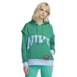 The Women’s Nike Sportswear Team Fleece Hoodie is inspired by the lettering used on letterman jackets and hoodies in high school for a throwback, athletic vibe. Made from a blend of cotton and polyester, the Nike Sportswear Team Fleece Hoodie is super soft and durable, while the brushed interior helps provide added warmth and a cozy feel. With the dropped shoulders and roomy sleeves, you’ll enjoy an oversized, relaxed feel for those cozy days and easier layering. Additional features include a hood with drawcord, front kangaroo pocket, and ribbed hem and wrist cuffs.
