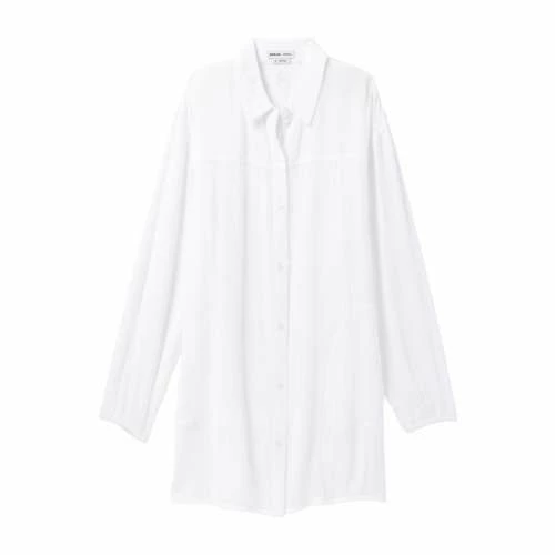 TENCEL Modal lightweight crinkle woven • Button front, long sleeve shirt dress • Functional collar and front placket with button closure • Elasticized sleeve hem • On seam hand pockets • Side slits • Above knee length • Dimensions: HPS 33 1/2″” (85.09 cm) long • Relaxed Fit