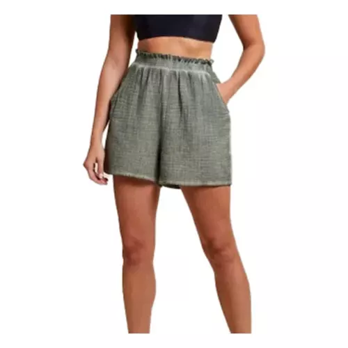 Warm weather requires breathable pieces and that’s exactly what you’ll find in these crinkled gauze shorts. We’re loving the 3″ inseam and the shirred elastic waist that flexes when you do, so you’ll never feel a tug at your tummy when moving around. Front pockets provide practical convenience, and the relaxed fit is oh-so-comfy.